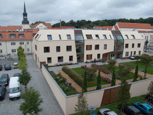 Diesen schönen Blick auf kleinen Markt und Bürgergarten (Bild links) werden bald wieder die Mieter in der Töpferstraße genießen können. Die SWG hat hier am Freitag die Rekonstruktion abgeschlossen.